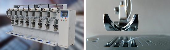 VC605TA型變頻調速絡絲機,適用于喂入品為纖度在50d-300d的彈力絞紗或L230與L170筒管的彈力紗。絡成波蘿形商品紗,供經(jīng)、緯、針織等使用。